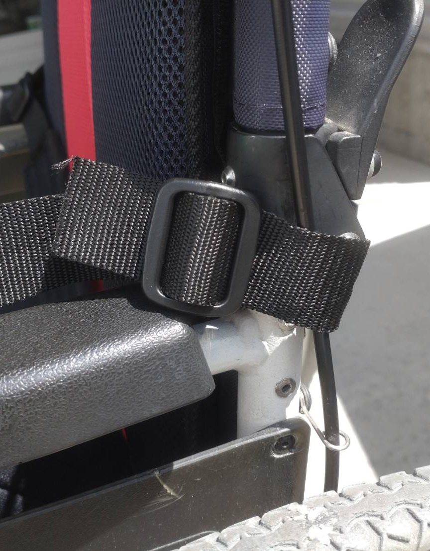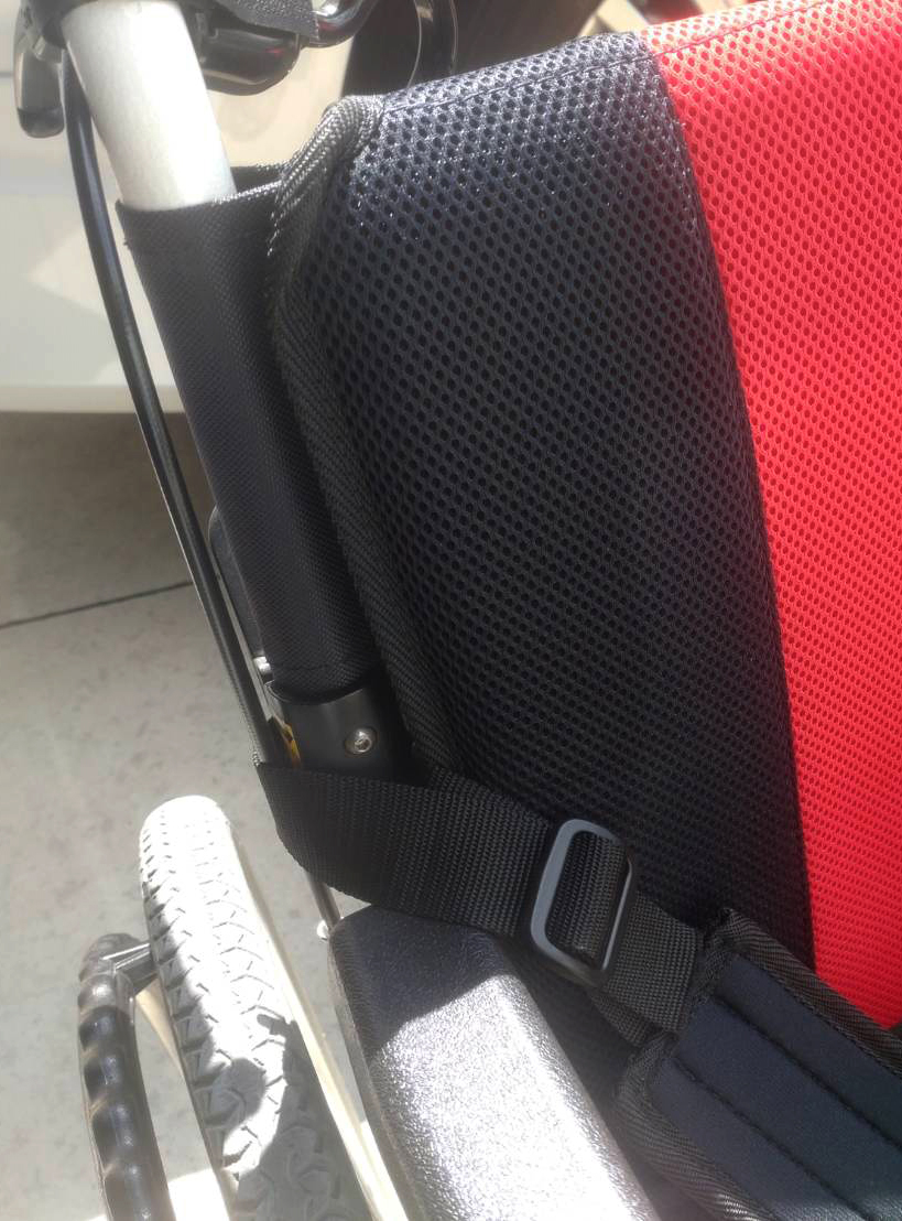 通常車いすの座・背シートにビスで止めますが付属品(アジャスター・別売)を使用すれば簡単に車いすに装着できます。